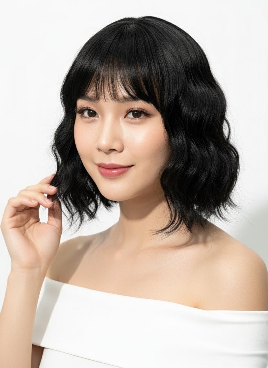küt severler anlık değişimin tadını siyah renkli vucut dalgalı peruk ile çıkarın saçını topla ve dışardasın.